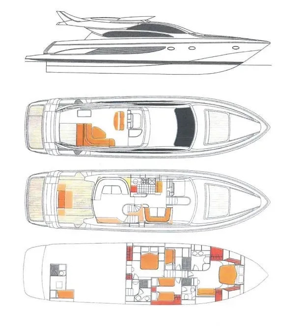 Cabin configuration: 2 Double Cabins, 2 Twin Cabins