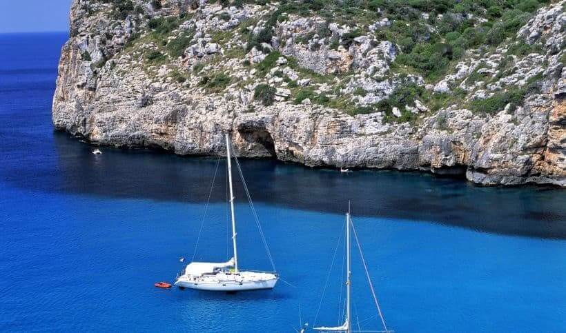 The islands of Othonoi and Ereikoussa are perfect destinations to visit by boat from Corfu. Characterized as small paradises, they are situated at the northwestern tip of Corfu. Shown below is the cave of Calypso, which is home to emerald waters and where, according to legend, the nymph of Calypso detained Odysseus (from Homer’s The Odyssey) for seven years.